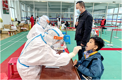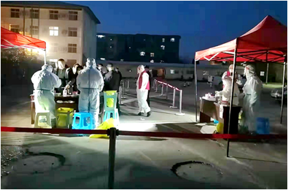 疫情就是命令,时间就是效率。时间紧,任务重,港狮门诊部立即部署,14名员工迅速行动,清点物资,协助第三采油厂布置筛查场地。下午3点,在旧州镇卫生院及南皮医院同行的支援下,全员采样工作准时开始,直至深夜9点,在医务人员、志愿者的同心协力下,完成南部油区7300名居民核酸筛查任务。