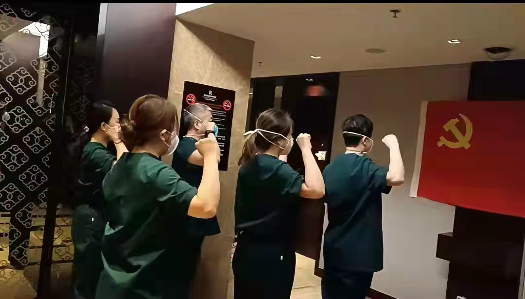 为了切实发挥战斗堡垒和党员先锋模范作用,入沪后,援沪医疗队成立临时党支部,设立14各党小组,为做好疫情防控工作提供坚强政治保证,我们是其中一个党小组。