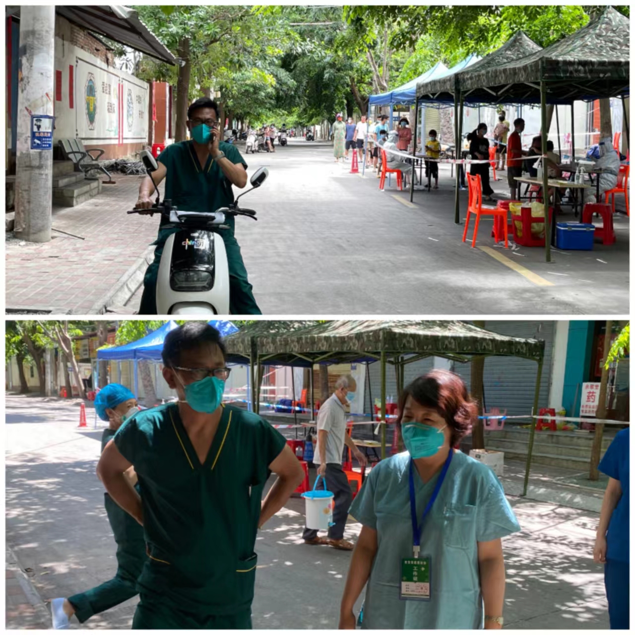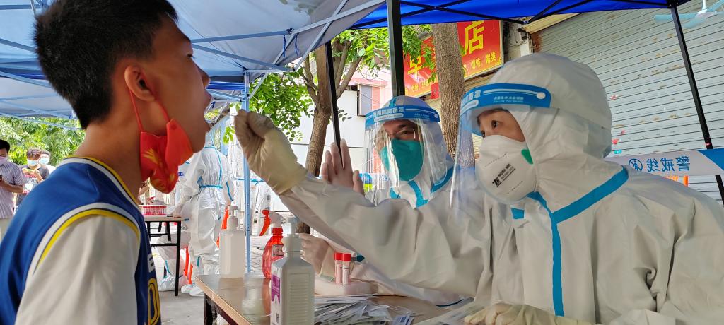在当地,医疗队更是带着“海医人”的热情开展工作,他们义务承担志愿者及社区人员培训,教当地工作人员穿脱防护服、6部洗手法、医疗垃圾打包等。因语言不通,大家就减慢语速耐心讲解,听不懂就做,一次次纠正,一次次示范,直到被培训人员达标。“‘张大嘴巴’为‘嗨口’。大家也在志愿者的热心帮助下,学会了一些简单的方言。虽然说的不标准,但居民能听懂,彼此熟悉后,工作效率也提高了不少。