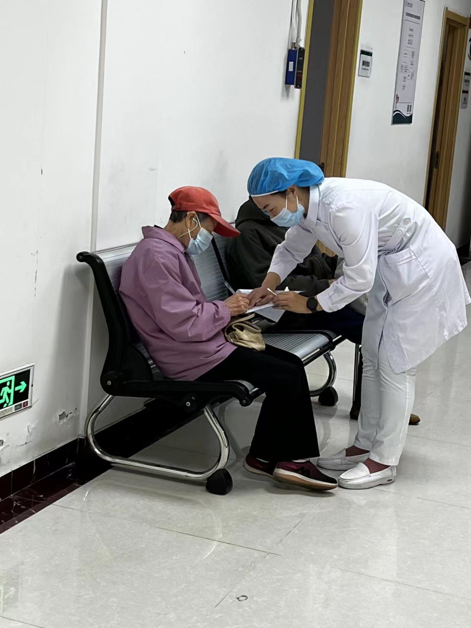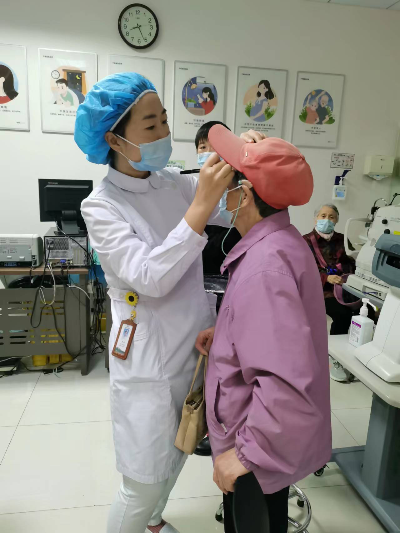 玻璃体腔注药术海滨人民医院眼科已开展多年,技术成熟,为方便患者,眼科不断优化流程,实现了患者当天住院,玻璃体腔注药术治疗后即可出院。当天办理出住院,这些手续对于年轻人来讲很简单,但这位老人,孩子在外地工作,自己听力几乎为零,老伴已近90岁高龄,办理这些手续还是相当困难。患者了解治疗过程后一筹莫展,孩子也很焦虑,既想积极治疗,又怕老人自己不会办理住院。