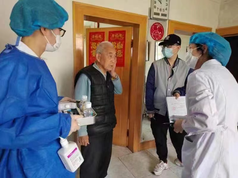 19日一早,接种队在社区工作者带领下来到居民家中,为有接种意向的老人进行健康评估,并解答老人及家人的困惑,充分做好接种前鉴诊工作。对于确定接种的老人,遵循“知情、同意、自愿”的原则,签署《新冠疫苗接种知情同意书》后,按照规范流程为老人接种疫苗。接种后,医生们利用30分钟的观察时间,为老人讲解接种疫苗后续注意事项,叮嘱老人们多饮水、多休息、清淡饮食、如出现不适及时到医院就诊,直到确认接种者身体状况良好后才离开。