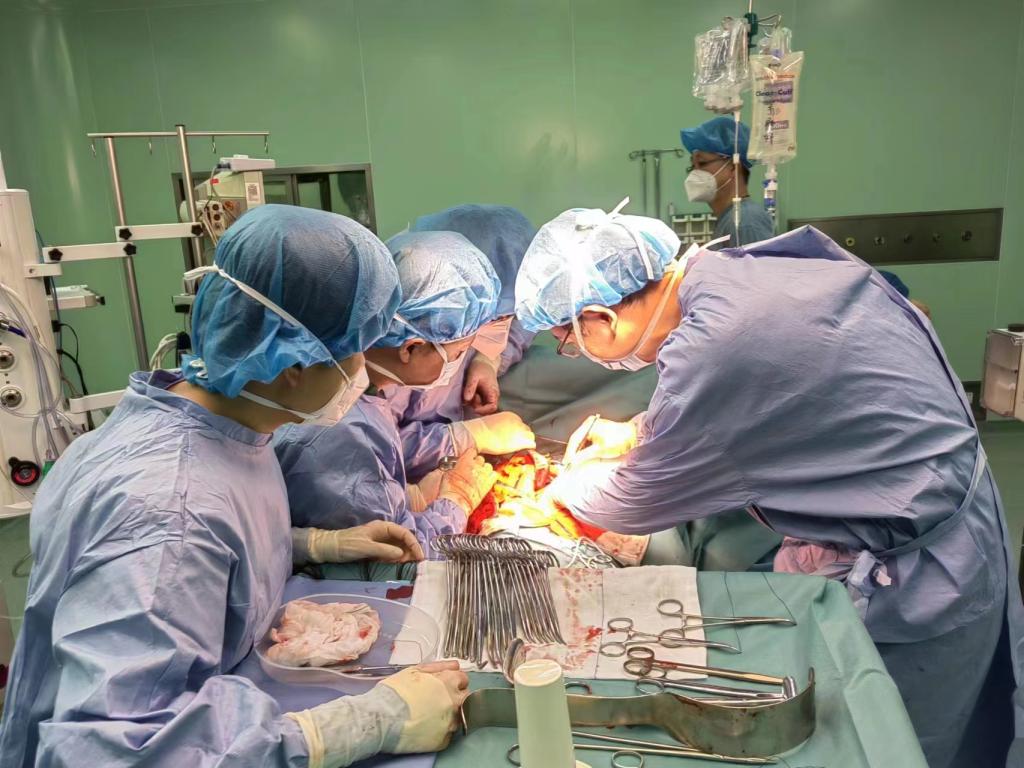 手术刀刚切开患者的腹膜,大量鲜血喷涌而出,充满了整个手术视野,手术医生迅速探查腹腔,发现是车祸导致患者大网膜破裂、肝脏膈面破裂,肝区积聚大量的凝血块,情况远比预想的严重。此时,全体手术团队人员心中只有一个信念,那就是:拼尽全力,也要将患者的生命从死神手中抢回来。手术医师立即为患者施行大网膜破裂修补术、肝右叶切除术。止血、分离、切割、缝扎......随着手术有序、顺利地推进,加上大量温热的液体及血液制品快速有效地输注,经过7个多小时的奋力抢救,监护仪上急促的滴答声慢慢降至平稳,患者的血压逐渐回升,各项生命体征趋于平稳,集尿袋中尿量逐渐增加,预示着患者循环和器官灌注在逐渐恢复,多器官功能不全的状态得到了有效地纠正。此时此刻,大家似乎也早已忘记因奋战一夜而导致的肿胀的双眼、疲惫的身体,想到患者能够重获新生,使命感油然而生。
