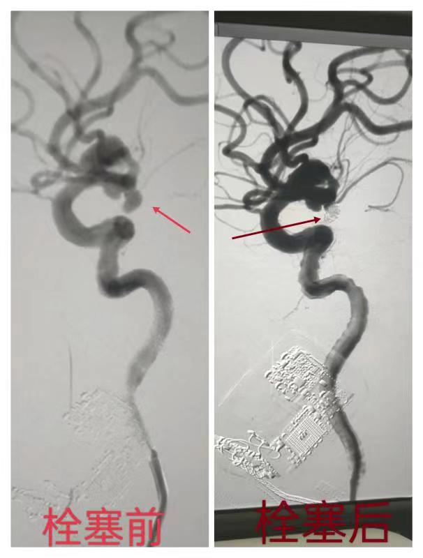 “患者病情凶险,动脉瘤随时有再破裂的可能,和家属交代病情,准备施行动脉瘤栓塞术”。各项急救准备工作有序、快速地进行着。麻醉师仔细查阅患者病例后,与手术医生沟通,准备麻醉药品及物品,技师、护士也在紧张有序的准备着患者的影像图片及手术耗材及物品。大家此时只有一个念头:要准确、无误为抢救生命做好准备。