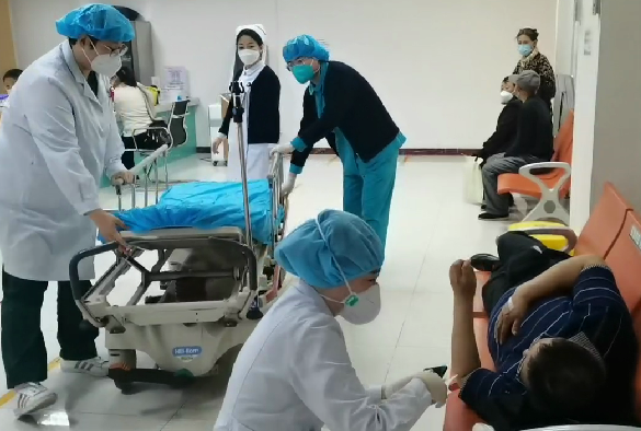 (通讯员 杨艳玲 闫丽娜)4月12日一早,海滨人民医院采血室如平时一样紧张忙碌着,8点20分时,一阵痛苦的呻吟声打破了平静!护士杨艳玲和王建荣一个箭步冲出操作台,及时扶住患者。此时病人面色苍白、出冷汗、坐立不稳,自述突然胸腹部疼痛难忍,两位护士赶紧扶患者到候诊椅上躺下。
