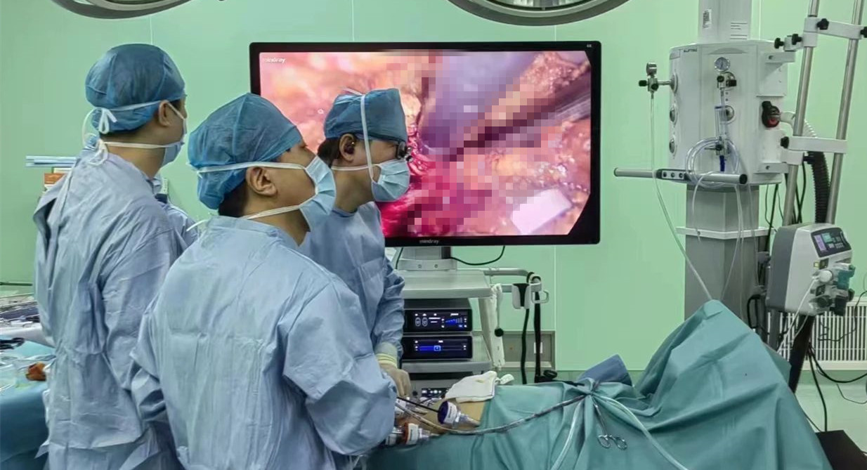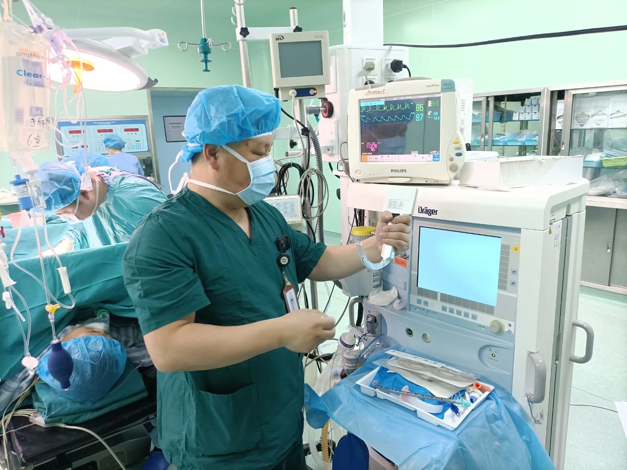 据刘旭峰副主任介绍,门静脉流域解剖性肝切除术,是以肿瘤为中心设计的荷瘤门静脉流域切除术式,更好地实现了在完整切除荷瘤门静脉流域的同时,保留更多、更完整的功能性剩余肝体积。相比于传统开腹肝切除术,具有创伤小、切口美观、恢复快等优势,降低术中出血和气体栓塞风险、减少术后缺血、淤血以及胆漏等并发症发生,带来更好的围术期疗效。但腹腔镜下操作空间有限,肝脏作为人体内最大的实质性脏器,较难翻动和显露。另外,肝脏内含丰富的脉管系统,结构复杂,也给手术带来了极大的挑战。此次首例肝肿瘤微创手术的成功,离不开胸心外科(肝胆外科)和麻醉与围术期医学科的共同努力,也离不开上级专家的指导。
