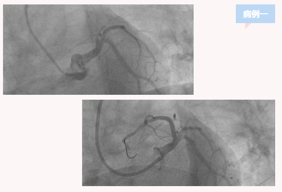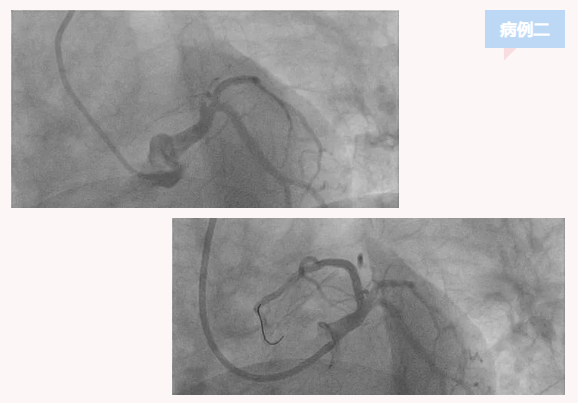 患者二,男,53岁,主因胸痛1小时来诊,急诊查心电图提示急性广泛前壁心肌梗死,急诊行介入治疗。造影提示前降支近段完全闭塞,其余冠脉基本正常,放置支架一枚,血流开通胸痛症状即刻缓解,住普通病房治疗一周后,康复出院。