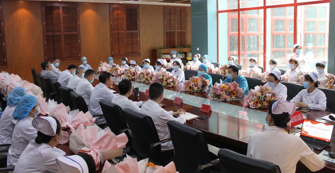 党委书记、院长娄永忠代表医院领导班子和全院职工,向临床一线护理工作者致以节日的问候和衷心的感谢,并向护理代表送上鲜花和贺卡,感谢辛勤耕耘的广大护理人员!