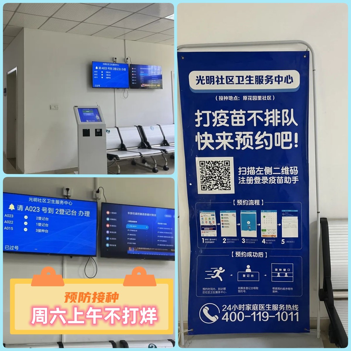 据了解,长期以来,疫苗接种只能在工作日进行,为解决家长上班忙,请假难的现状,让居民工作不受影响,孩子上学入托不耽误,光明社区卫生服务中心响应滨海新区卫健委高质量发展要求,秉承“我为群众办实事”的服务理念,拓宽疫苗接种服务内容及服务时长,增加每周六上午服务时段,满足居民群众非工作日疫苗接种需求。