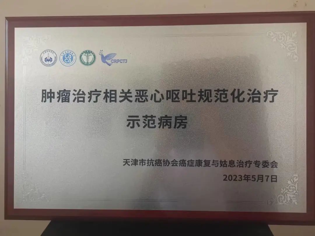 经过多方努力,2023年5月7日海滨人民医院肿瘤内科顺利通过天津市首批肿瘤治疗相关性恶心呕吐规范化诊疗无呕示范病房的评审。下一步,肿瘤内科将进一步规范抗肿瘤诊疗行为,完善优化肿瘤患者化疗止吐规范化流程,关心关注化疗患者的身心健康,实现肿瘤患者治疗舒适性及生活质量的全面提升。