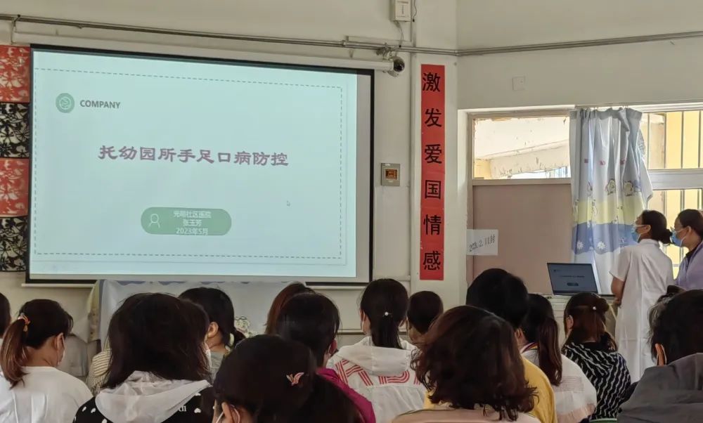(通讯员 李迎春)为切实做好手足口病的预防和宣传工作,增强群众自我防护意识和应对能力,5月26日,光明社区卫生服务中心预防保健室与北苑小区幼儿园联合举办了《预防手足口病》家长课堂活动。
