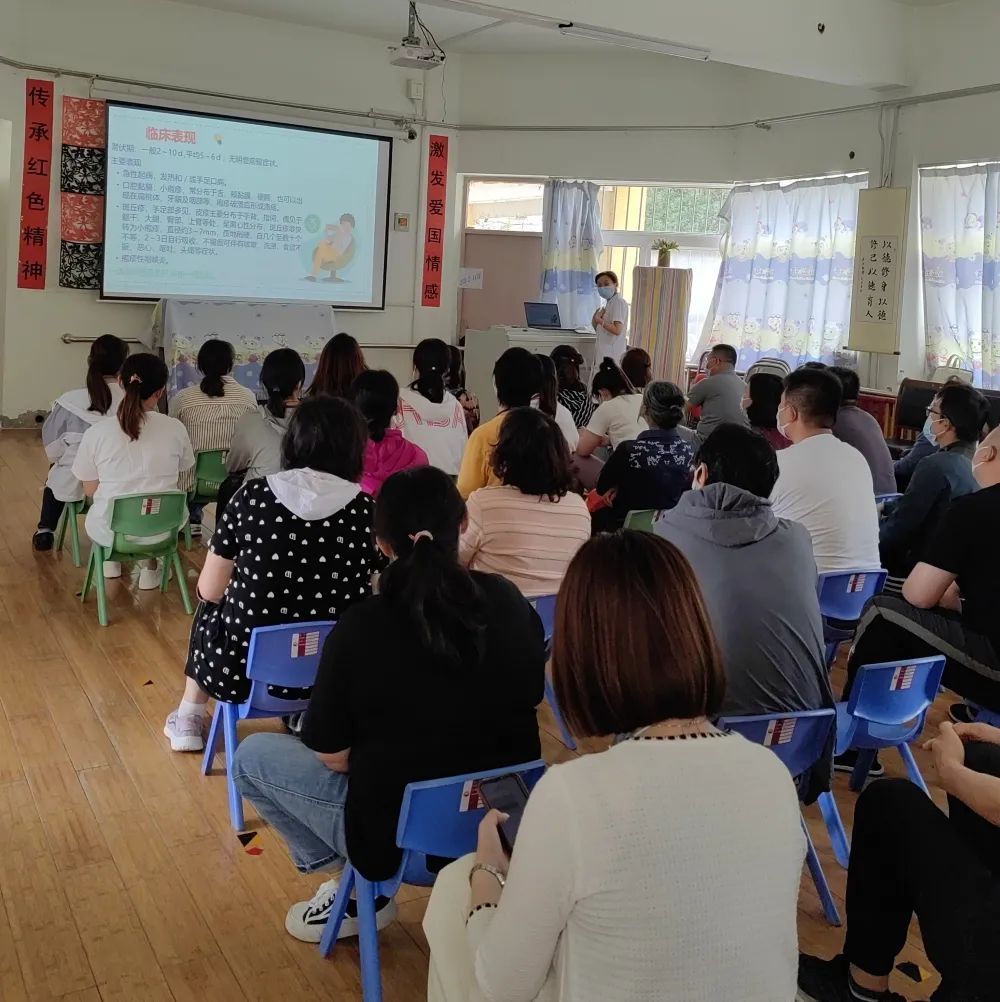 据了解,手足口病是由多种肠道病毒引起的一种儿童常见多发传染病,多发生于5岁及以下儿童,主要通过空气(飞沫)、口、密切接触等方式传播,极易在幼儿园等密集场所传播。现场,医护人员用通俗易懂的语言,向老师和家长介绍了手足口病的常见症状、传播途径、预防措施等相关知识,并耐心解答家长们的问题。此次宣讲,让家长们加全面的了解了手足口病的危害及预防措施,提高自我保健意识和防范能力,家校医联合架起幼儿健康的保护屏。
