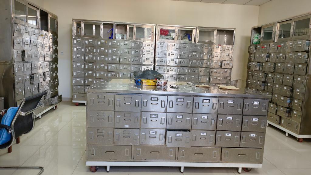 活动中大家集思广益、齐心协力对草药房布局进行重新规划。将挡住窗口的中药柜移至靠墙位置,整齐地摆放成U型;调剂台调整到中间位置,搭建成更易操作的T字型;药架则根据不同尺寸依墙整齐排列。经过调整,草药房从原来的狭小逼仄变的宽敞明亮,合理的布局更利于药师操作,提高了工作效率。患者自窗口可以清楚的看到药品调剂情况,增加了患者信任度。随后大家分工合作,对库存草药进行筛查,按照易霉变、易虫蛀、易潮解等类型分别存放到冷藏柜、阴凉屋,确保储存环境避光、防虫、防潮。同时专人控制药房空调温度,每日进行室内及冷藏柜的温湿度检查登记。