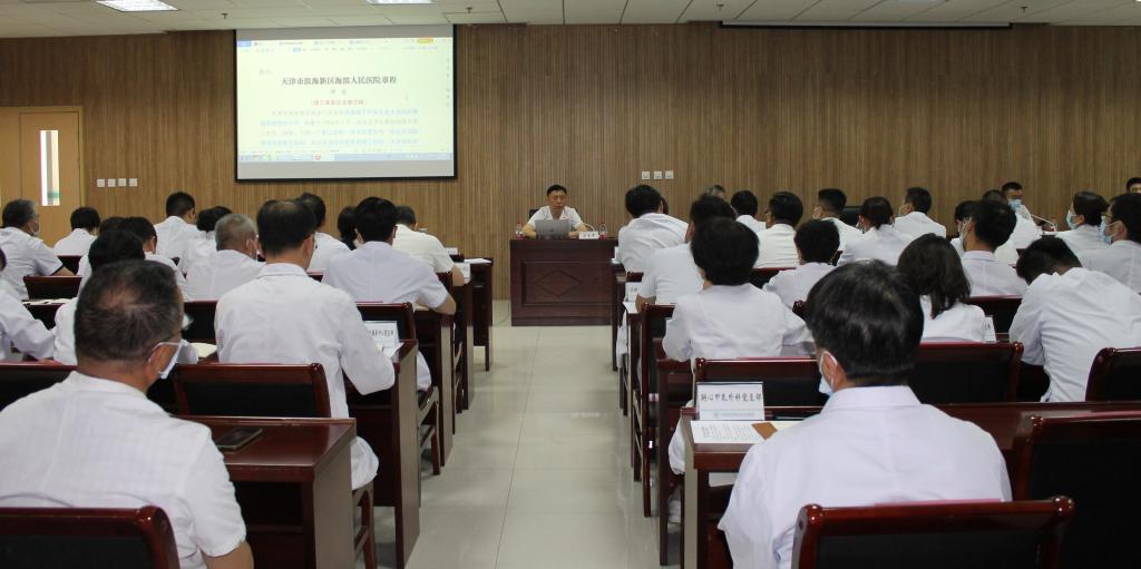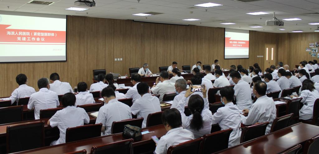 (通讯员 张兴 张慧莲)6月7日下午,海滨人民医院召开党建工作会议,医院党委书记娄永忠同志主持会议,党委委员、各基层党组织书记、支部委员和科室主任93人参加会议。