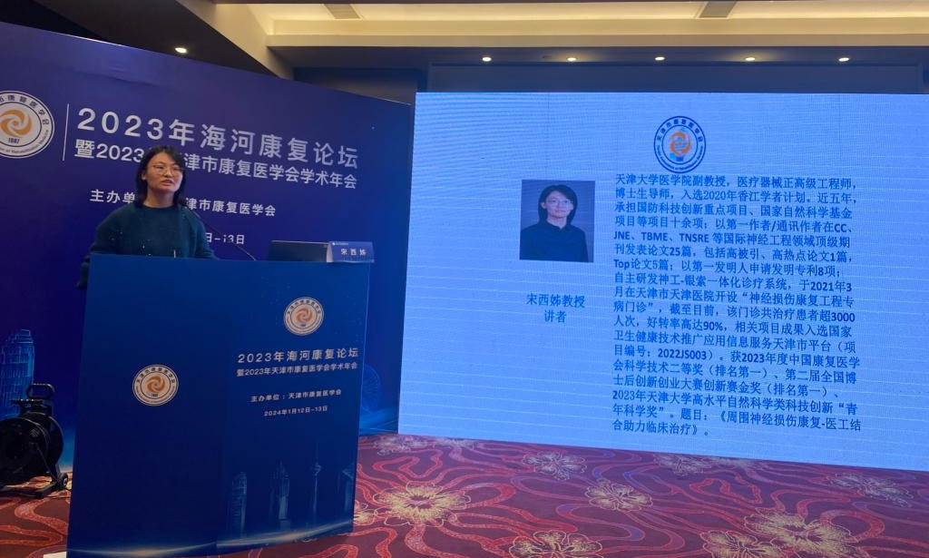 天津大学医学院副教授宋西姊教授从空间阵列编码电刺激精准治疗方法、肌电驱动外骨骼机器人主动康复系统等方面讲解了《周围神经损伤康复-医工结合助力临床治疗》。