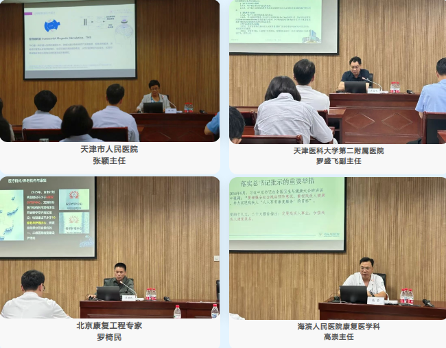 在学术分享环节,专家们带来了前沿且实用的专题报告。天津市人民医院张颖主任通过典型病例,系统阐释了经颅磁技术在改善脑卒中患者运动、认知等功能方面的临床价值与操作要点;天津医科大学第二附属医院罗盛飞副主任深入浅出地介绍了体外冲击波疗法在基层应对慢性疼痛的规范化应用与新进展;来自北京的康复工程专家罗椅民聚焦“人工智能+康复工程”融合领域,生动剖析了智慧科技在社区养老、居家康复中的应用潜力与实施策略;海滨人民医院康复医学科高崇主任从政策导向、人才培养、服务体系构建等多维度,为建立科学、高效的现代化社区康复服务体系提供了系统性思路与发展建议。