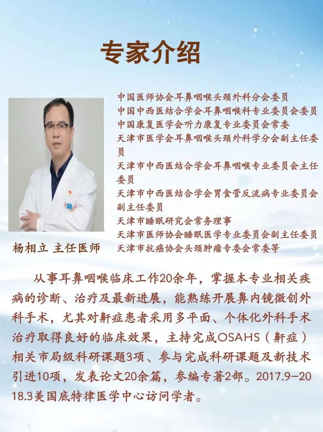 阻塞性睡眠呼吸暂停综合征在女性中易被忽视,往往确诊时已属重度,并易引发高血压、糖尿病等并发症。为提升专科诊疗能力,海滨人民医院自2025年,聘请天津市人民医院耳鼻喉科杨相立主任为名誉主任,每月定期来院出诊,对疑难病例带教查房,推动优质医疗资源下沉,让居民在“家门口”就能享受到优质诊疗服务。