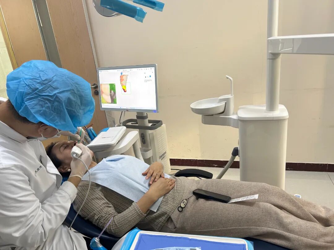 据了解,该设备可为牙齿拍摄一张立体的“3D照片”。在检查过程中,医生只需将小巧的扫描探头在患者口腔内轻移,短短几分钟内,即可精准获取牙齿、牙龈及咬合关系的完整三维数据,并实时生成高清数字模型。