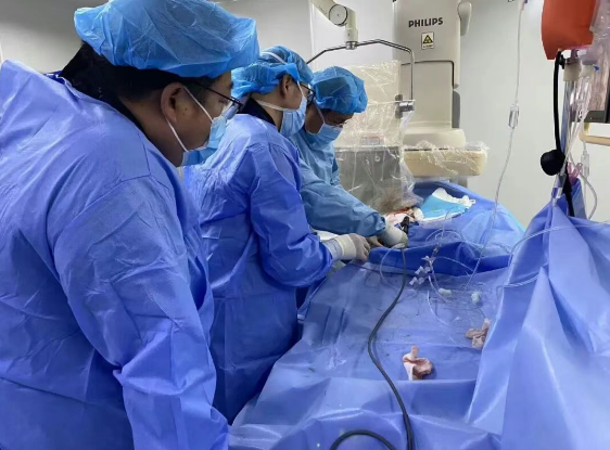 患者既往有高血压、糖尿病、高血脂等病史,此次因急性脑梗死入院,活动后憋气明显,心电图示心肌缺血。面对复杂的病情,医院迅速启动泛血管多学科协作(MDT)诊疗,经神经外科与心脏内科共同讨论,决定采用心脑联合介入方案,减少患者分次手术的负担与风险。