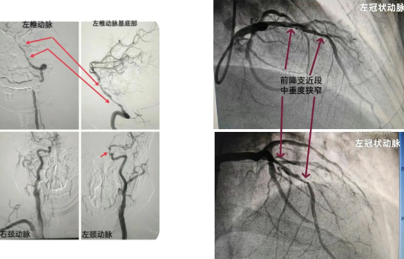 术中,两科团队在导管室协作下,先后为患者完成心血管及脑血管造影。结果证实患者前降支近段弥漫性高度狭窄,同时左椎动脉V4段也存在重度狭窄,心脑两处均存在急需干预的高危病变。此次联合手术为后续制定综合治疗方案提供了关键依据。