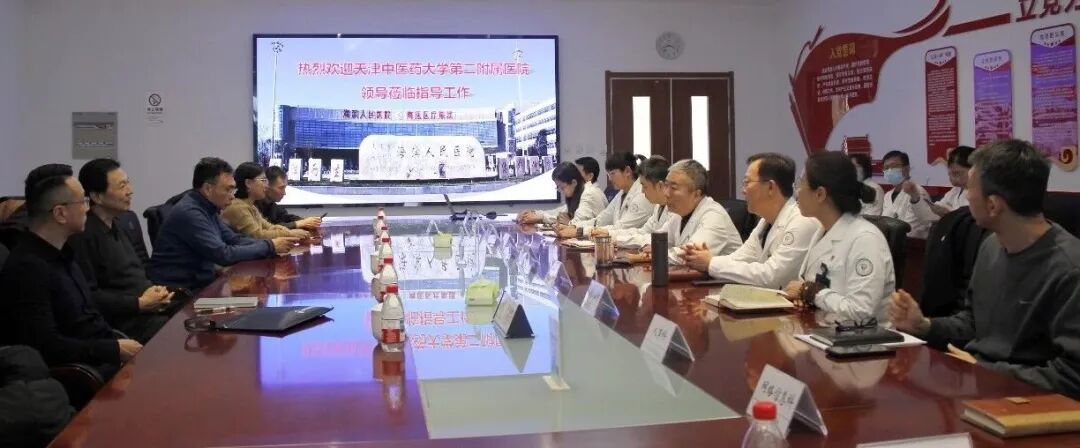 为进一步深化医院中医科内涵建设,提升综合服务能力与管理水平,我院特邀天津中医药大学第二附属医院专家团队开展调研交流活动。1月30日,天津中医药大学第二附属医院古恩鹏院长、徐强副院长及相关科室负责人一行5人莅临我院,围绕中医学科建设、专科发展、协同发展等内容展开深入研讨与实地指导。