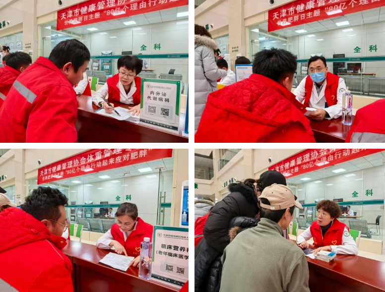 现场来自内分泌代谢病科、临床营养科、康复医学科的韩颖、金娜娜、高崇、石节丽等多位专家共同参与义诊,为前来咨询的居民提供个性化的减重指导,并结合常见慢病的预防与管理,普及科学减重理念。