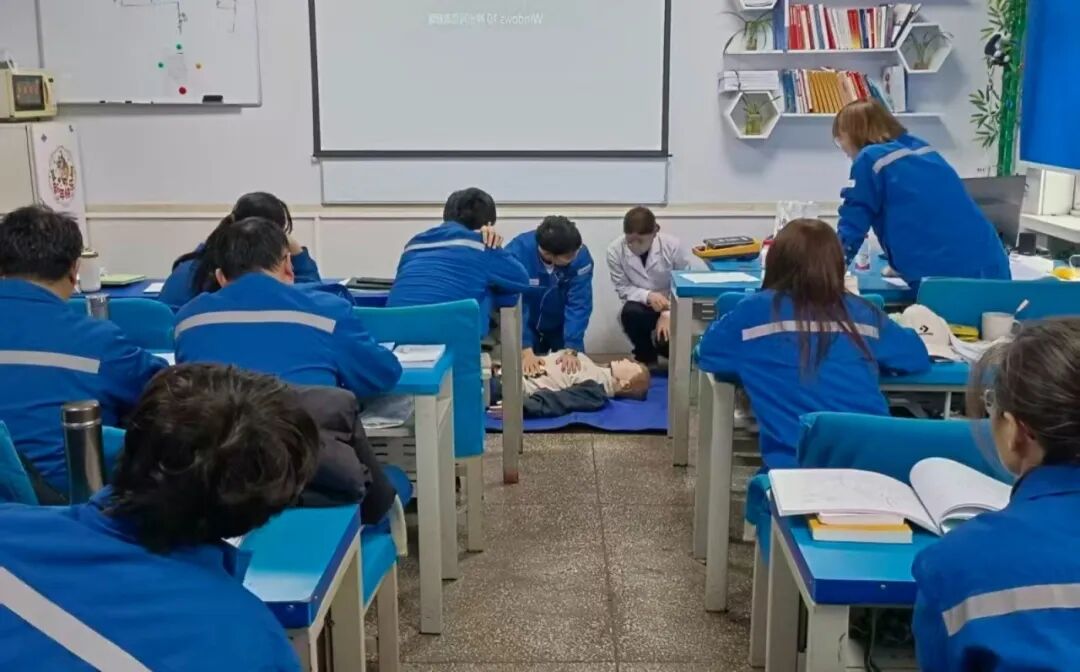 实操环节,医生借助模拟人和除颤器现场演示标准动作,随后参培人员分组实操练习。培训老师全程一对一指导,逐一纠正按压位置、力度、频率,帮助员工实现从“不敢按”到“敢操作、会操作”的转变。参训职工纷纷表示,这样的培训既实用又贴心,不仅提升了应急处置能力,也让大家在工作和生活中多了一份安全保障。