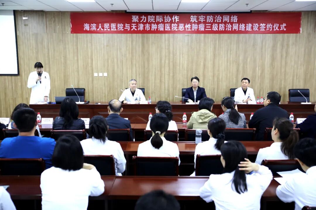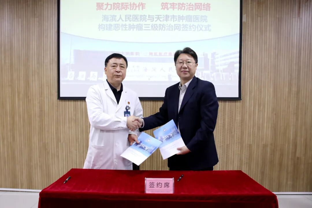 4月17日,在第三十二个全国肿瘤防治宣传周期间,海滨人民医院与天津市肿瘤医院正式签署《恶性肿瘤三级防治网络建设协议书》。双方将依托天津市肿瘤医院自主研发的“天肿院际协作平台”,围绕肿瘤“防、筛、诊、治、康”全流程管理,构建覆盖区域基层医疗机构的恶性肿瘤三级防治网络,推动优质医疗资源下沉,落实分级诊疗与双向转诊。