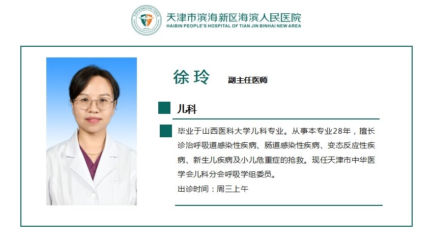 专家介绍 网站首页 > 医生介绍 > 专家介绍 > 正文 徐玲 儿科 毕业于山西医科大学儿科专业,副主任医师职称。从事本专业28年,擅长诊治呼吸道感染性疾病、肠道感染性疾病、变态反应性疾病、新生儿疾病及小儿危重症的抢救。现任天津市中华医学会儿科分会呼吸学组委员。 出诊时间:周三上午